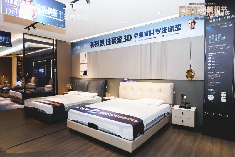 慕思床垫品牌:慕思床垫 地点:江南家居一楼A031-032 慕思自2004年创立以来,始终以“让人们睡得更好”为使命,整合全球优质睡眠资源,打造集研发、生产、销售于一体的健康睡眠系统。 依托江南家居“一站式”家居购物平台优势,慕思门店为消费者提供从睡眠咨询、免费测量到空间搭配的全流程服务,更推出多款高性价比家居套餐,满足客餐卧全场景需求。在这里,你可亲身体验 AI 智能床垫的睡眠监测、远程关怀等黑科技,也能享受慕思金管家 4.0 级尊享服务 —— 从专业送装团队的 “七彩阳光” 配送,到送货后2天回访、6个月上门翻调的全周期关怀,再到每年1次的深度除螨与寝具护理,让每一次消费都延续温暖陪伴。